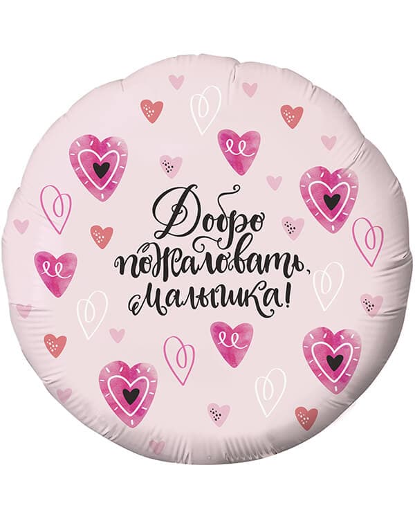 Главная страница » Каталог » Шары по событиям » Выписка » Для девочки » Круг Добро пожаловать Малышка! (сердечки)